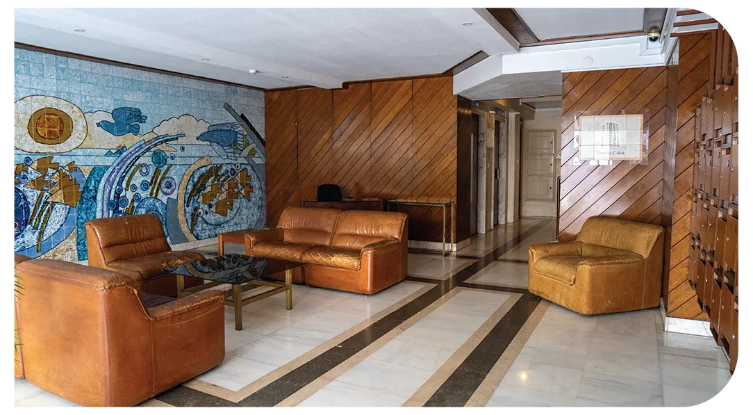 O prédio é dos anos 80, bem cuidado e